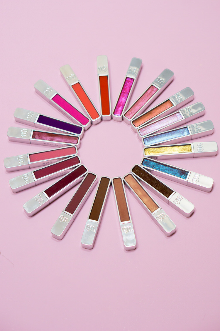 The new Urban Decay Hi-Fi Shine Ultra Cushion Lipgloss collection offers a lineup of 20 shiny long-lasting lip gloss products that come in 4 different finishes—metallic, holographic, cream, and sheer cream. The shade range is very diverse, from vivid orange and purple to a wide range of nudes.